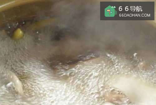 4兔骨大概熬30分钟后,放入菇片、泡椒