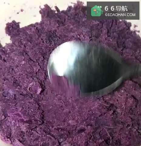 2把蒸熟的紫薯放入盆中,粘成泥状,加入适量的炼乳,团成小圆球;