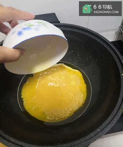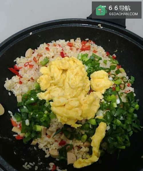 8最后倒入炒好的鸡蛋和葱碎翻炒均匀。