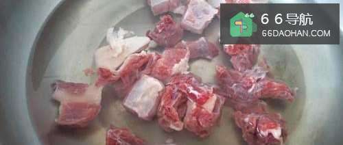 2炒锅上火,把牛肉与凉水一起下锅,淖一下水,去去血水。