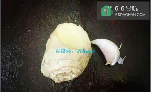 4准备少许生姜、蒜头,八角、滕椒等,生姜洗净切丝,蒜头去皮切末;打开电磁炉,加入适量油,先将猪头肉放入稍微炸一会。