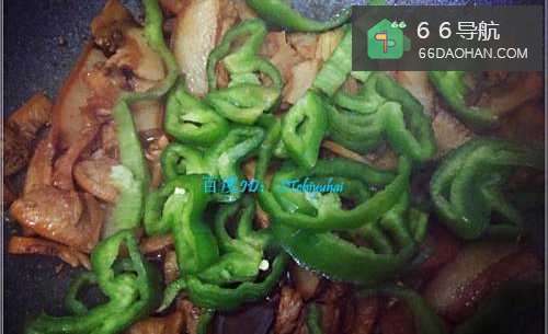 6一会加入前面切好的泡椒、姜蒜以及红烧酱油,然后翻炒一阵。