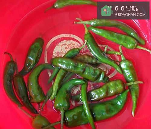 5取青椒适量,用冷水洗净,我这个青椒买的是当地老奶奶的辣椒,个子比较小,但是味道很不错