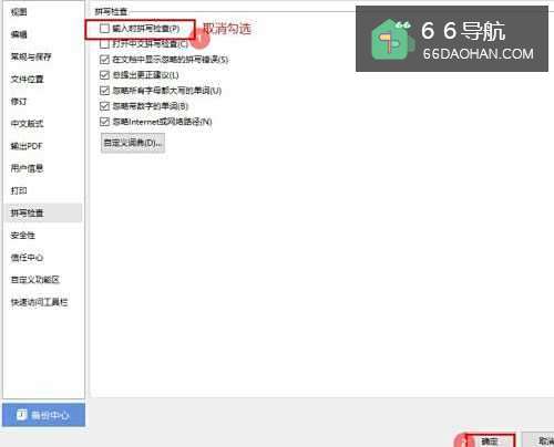 4在“拼写检查”对话列表中,取消勾选【输入时拼写检查】,然后点击【确定】即可;