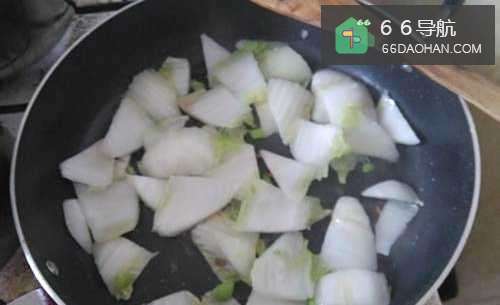 5将白菜斜刀切好,如果是比较嫩的白菜就切好放在一起就好。