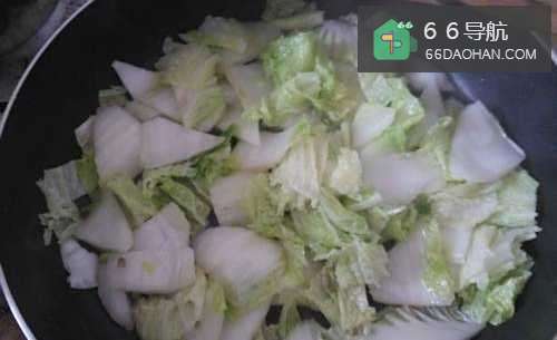 8待菜帮炒的5成熟左右加入白菜叶翻炒。
