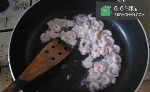 6锅中加油,待烧热后将裹好蛋清和水淀粉的虾仁放入滑炒一下,待8分熟后取出。