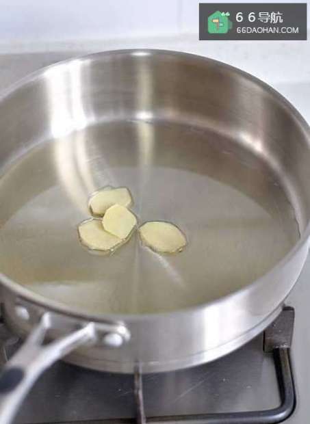 7在炒锅里倒适量油,油热后把姜片放进去炒香