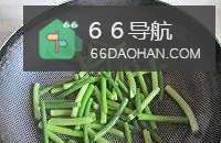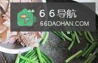 6取干净锅, 放入适量的油, 下入蒜苗段翻炒;