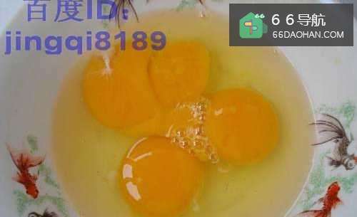 3把鸡蛋打到碗内,用筷子把蛋黄和蛋清打匀。