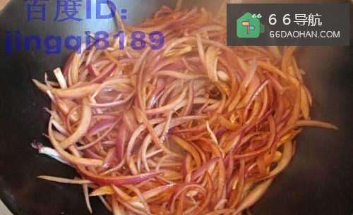 5锅里重新放油,烧热,放入洋葱丝,再加入花椒粉、酱油翻炒。