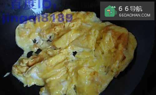 4锅里放油,烧热,然后把鸡蛋炒成碎块,盛在碗里备用。