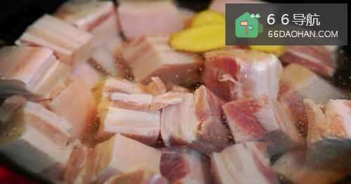 3锅内放入水,五花肉冷水下锅,再放入2片姜片