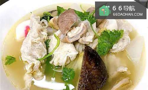 猪肚四宝汤融合了白萝卜、菇类及白菜的鲜甜味,加上猪肚非常搭配。