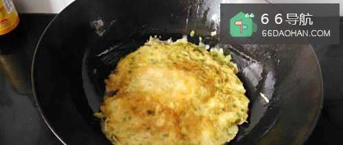 4锅中倒入适量油(可以多放点),待油烧热,将鸡蛋液倒入锅中,中小火煎制