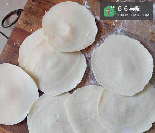 4如图,用擀面杖把小面块擀制成圆圆的面皮。