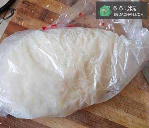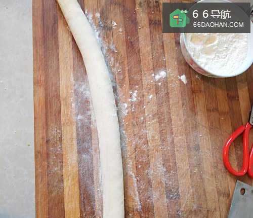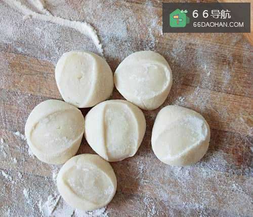 3如图,把面剂子切成小块,然后用掌心将其压扁。