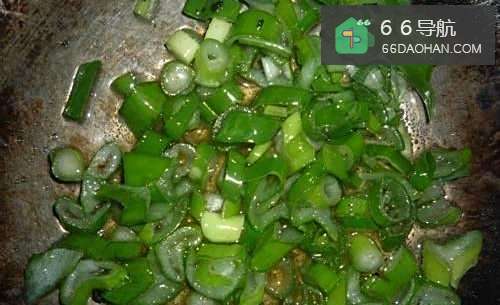 5再把猪血放入锅中,加食盐少许,翻炒。