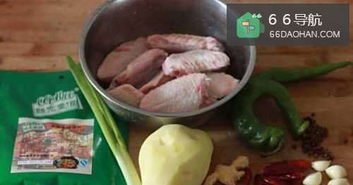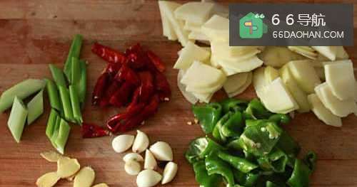 2把葱和干辣椒切成段,大蒜、生姜、土豆切成片,青辣椒切成块状