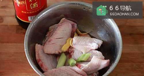 4把盐、姜片、料酒、1/2葱段和鸡翅混合,抓匀后腌制20分钟