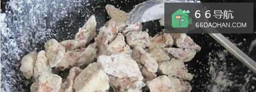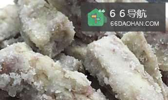 2找个小盘装生粉,并将芋头块一个个裹上生粉。