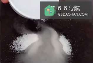 4锅洗干净,锅内大火,依次放入白砂糖、水,用大汤勺朝上,且不断地在锅里不断地打圈圈。