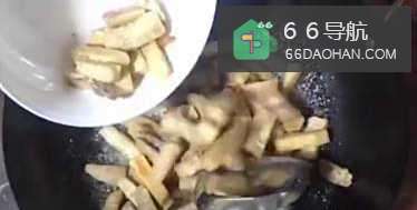 一边锅内打圈,另一只手一边配合倒入炸好的芋头块。