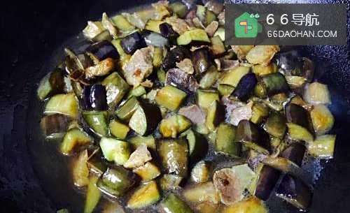 5茄子稍微变软之后加入适量冷水,水量大约是茄子的三分之二处,大火将水烧至8成干即可。