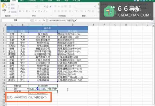3此时需要我们对查找的字符串进行加工,增加一个“**”通配符可以帮助快速查找出该字符串,整个函数为“=COUNTIF(C3:C19,"*旅行社*")”。
