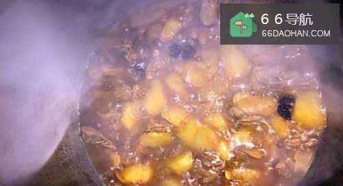 7鸭肉焖15分钟后,加入先前炸好的土豆块,混匀后加盖继续焖煮约5分钟。