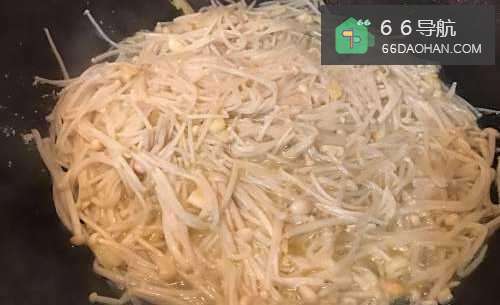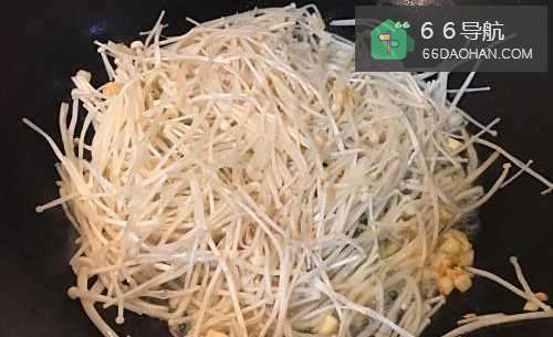 5倒入金针菇,炒约3分钟至金针菇变软。
