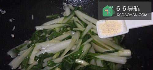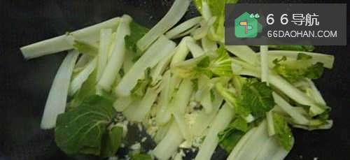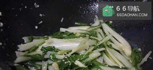 3热锅,下油,高温爆香蒜末,先放青菜梗