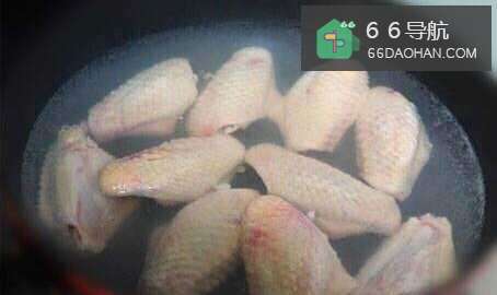 2第二步,将解过刀的鸡翅放入锅中,加水至刚好没过鸡翅的位置,调小火,等到水快开锅的时候关火,这时不能让鸡翅煮起来,那样的话后面放可乐不能入味。
