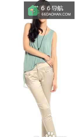 4清淡宜人的冰绿色雪纺背心轻盈飘逸,搭配柔和的卡其色九分裤,给人带去丝丝清凉的恬静感觉!十分突显夏季OL女性的知性大方气质!