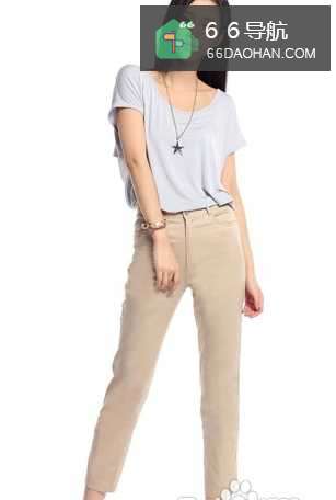 5素雅的浅色T恤搭配高腰九分裤,轻松穿搭出今夏流行的高腰感觉!更显高挑动人OL女性气质!