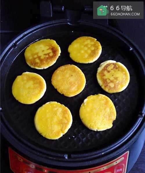 9电饼铛“蜂鸣”提示音响起时,红薯煎饼就做好了。