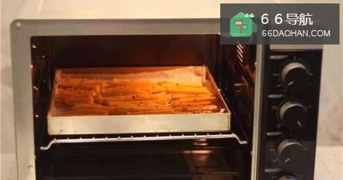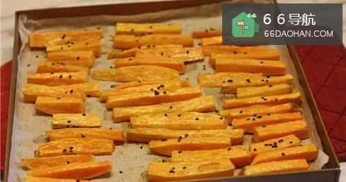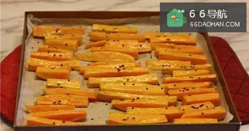 6红薯条再放入烤箱中层上下火180度烘烤10分钟。