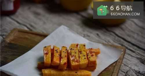 7烘烤好的红薯条可以趁热吃,也可以放凉后淋上桂花蜜和蜂蜜。