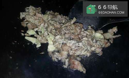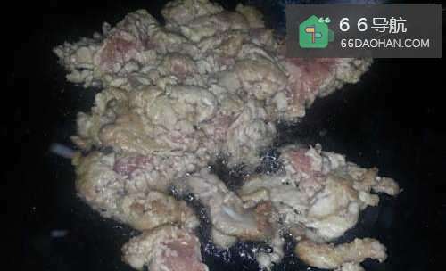 4热油后,将肉片放入锅中且不断翻炒。