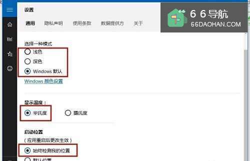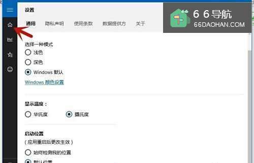 5我们也可以将”启动位置”设置成“始终检测我的位置”,还可设置显示的温度是”华氏度“,还是”摄氏度“,这样下次启动时,系统便可自动检测电脑所在的位置,并报出气温和温度了。