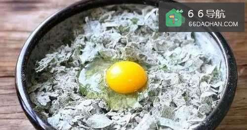 5把鸡蛋与面糊调匀,总的原则是,红薯叶多些,面粉少些,以红薯叶为主。
