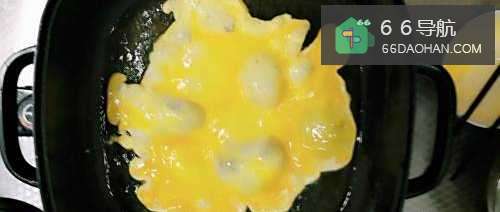 4待油温烧热后,倒入鸡蛋后,适当翻炒,成型后盛出备用。