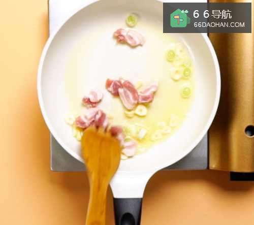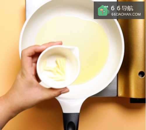 2接下来,起锅烧油,倒入食用油5ML,倒入蒜片,葱花,大火爆香;