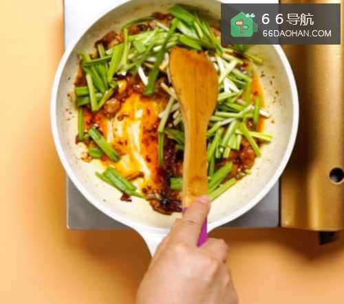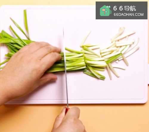 5最后,我们倒入切好的蒜苗,翻炒均匀就OK了。