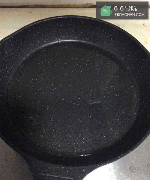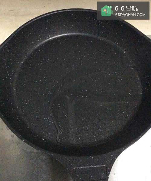 5稍微加热后,端起平底锅,左右摇晃,让油均匀分布在锅底