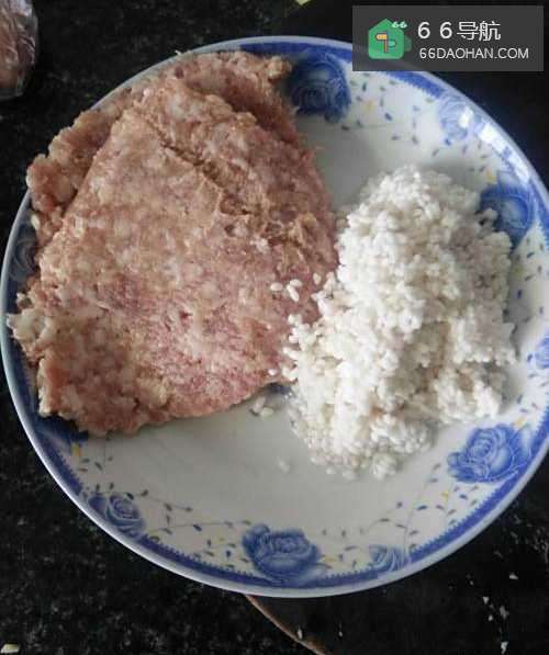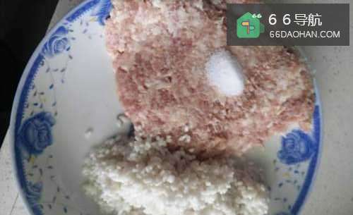 6实用快跳把瘦肉和糯米搅拌均匀,然后做成肉饼状。
