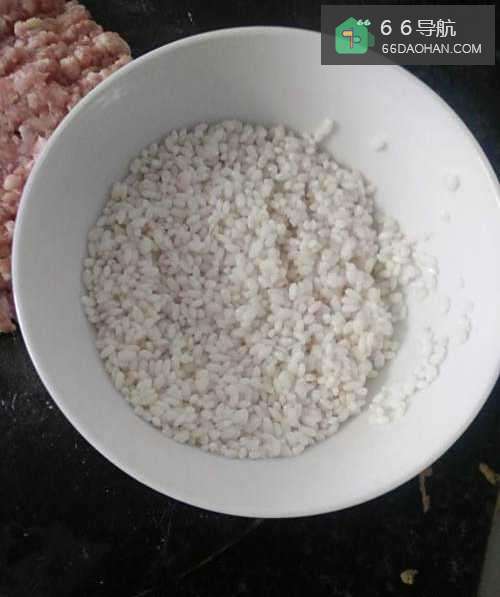 3糯米浸泡好后把水倒掉,碗中留下浸泡的糯米。