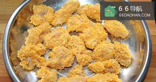 3腌制好后,在表面裹上一层薄薄的淀粉,然后蘸上蛋液,再裹上一层面包糠备用。
