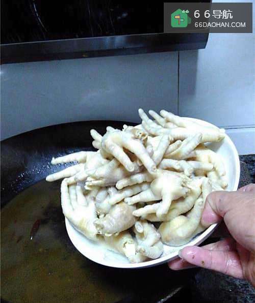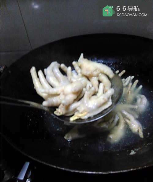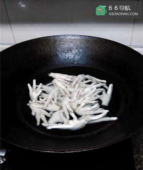 3锅里倒入适量清水,放入鸡脚大火烧开。