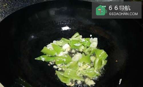4起锅烧油,加入葱末蒜末和尖椒一起翻炒!(有豆瓣酱或者辣椒酱放点味道更香)